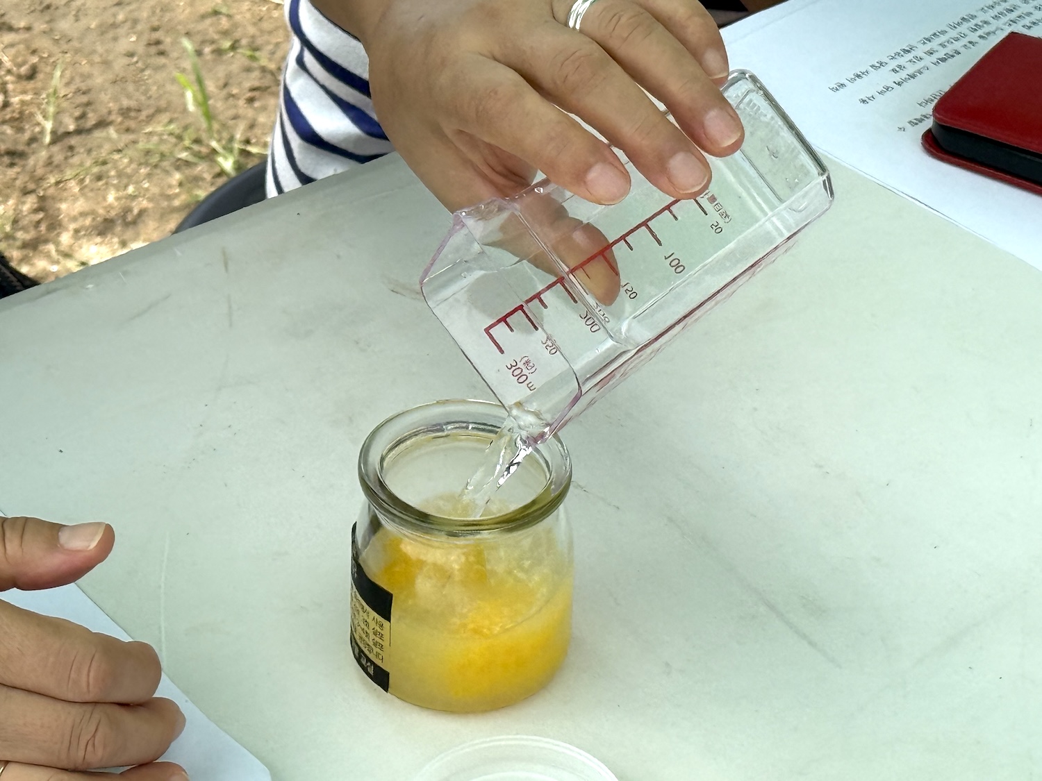난황유는 계란, 물, 식용유로 만든다. ©서울농부포털이어 난황유를 직접 만들어 보는 실습이 진행되었습니다. 난황유는 2005년 농촌진흥청 유기농업과에서 개발된 유기농 작물보호제로, 유채유·해바라기유 등의 식용 오일을 계란 노른자로 유화해 만든 현탁액입니다. 흰가루병, 노균병, 응애 등 각종 병해충의 예방 및 방제 목적으로 활용할 수 있습니다.