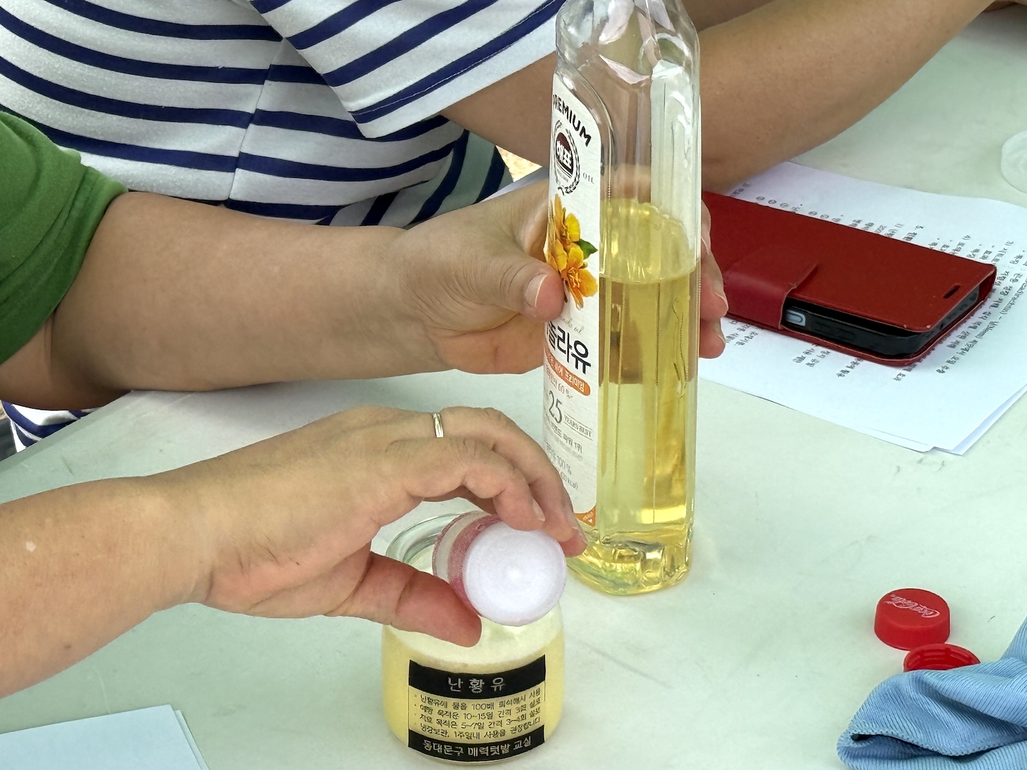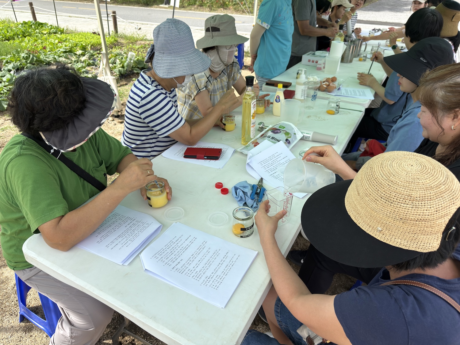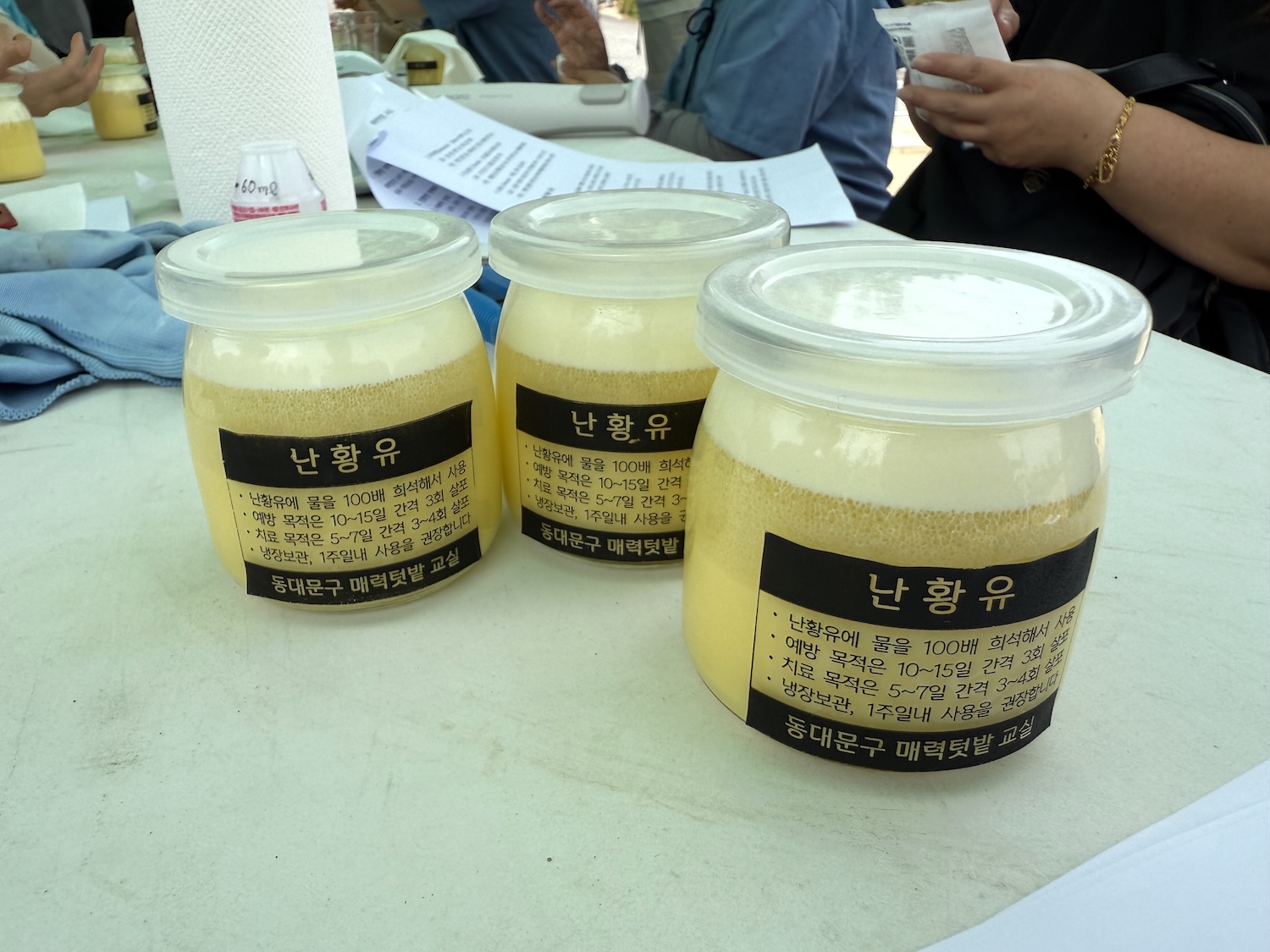 동대문구 도시농업 체험학습장에서 <동대문구 매력텃밭교실> '친환경 살충제 난황유 만들기' 수업이 열렸다. ©서울농부포털9월 15일(월) 동대문구 도시농업 체험학습장(중랑천서자전거길 688)에서 <동대문구 매력텃밭교실> '친환경 살충제 난황유 만들기' 수업이 열렸습니다. 난황유는 만들기 쉬우면서도 안전성·실용성 등을 두루 갖춘 친환경 기반 살충 자재로, 예방 중심의 지속가능한 방제를 할 수 있다는 장점이 있습니다.