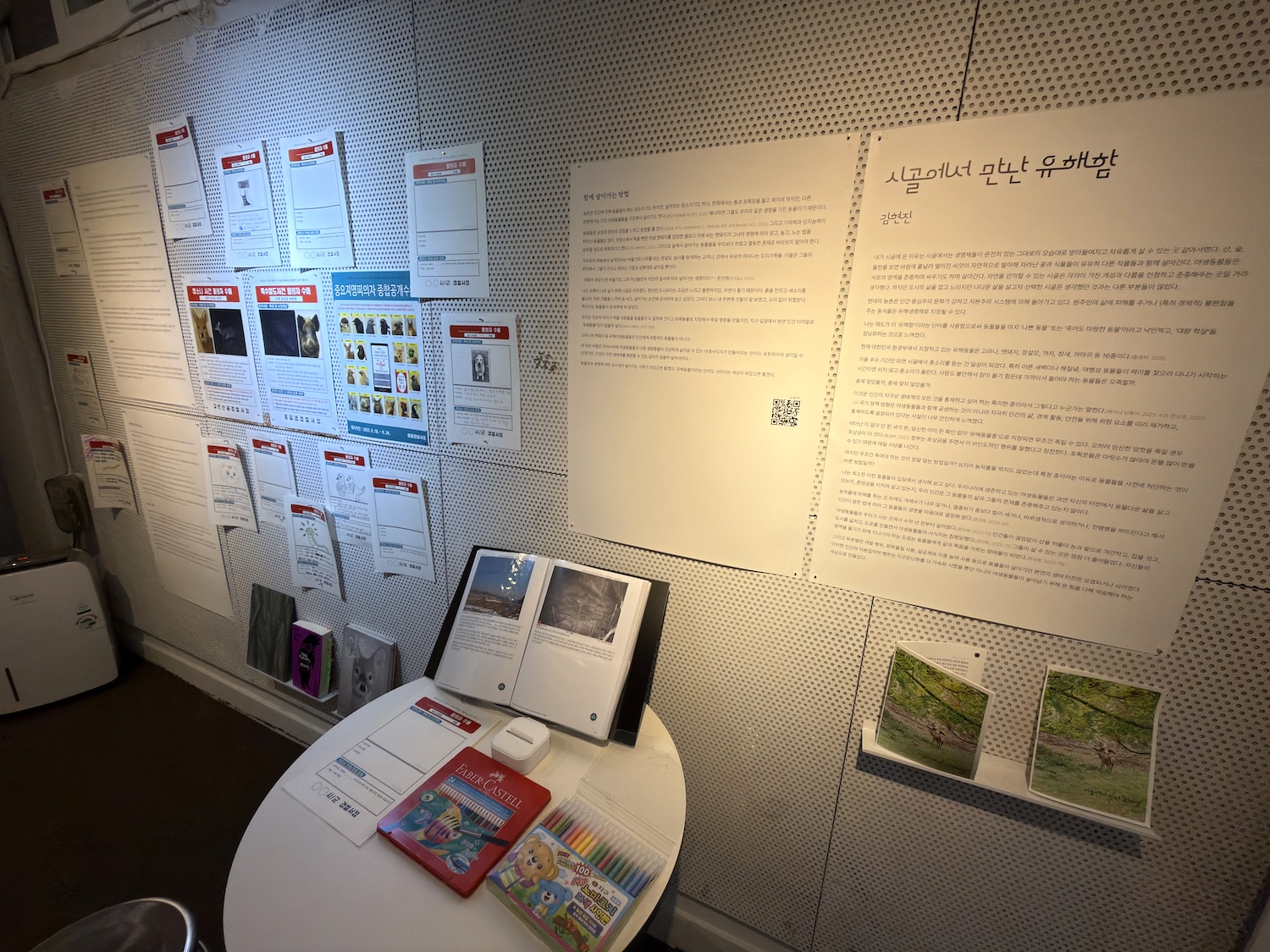 이너프라운지에서 "농촌, 시좌의 교차 기획전시 <응應>"이 열렸다. ©서울농부포털9월 18일(목)부터 24일(수)까지 이너프라운지(마포구 토정로17길 11)에서 "농촌, 시좌의 교차 기획전시 <응應>"이 열렸습니다. "농촌, 시좌의 교차 기획전시 <응應>"은 고령화와 과소화, 지방소멸 같은 단어로 납작해진 농촌의 이미지를 넘어, 다양한 지역으로 이주한 청년들이 생활 속에서 길어 올린 이야기와 이미지로 농촌을 새롭게 장소화하는 독특한 주제로 열렸습니다. 전시에 참여한 작가들은 익숙한 세계를 떠나 내면의 이끌림과 주변과의 상호작용에 응답해 이주를 선택했으며, 농촌을 영원한 정착지가 아니라 '지금, 여기'를 지나가는 과정의 자취로 바라봤습니다. "농촌, 시좌의 교차 기획전시 <응應>"은 외면하거나 회피하지 않는 '함께 있음'의 노력과 그 과정에서 생겨나는 감응의 장면들을 통해, 농촌을 새롭게 바라보는 시선을 제시했습니다.
