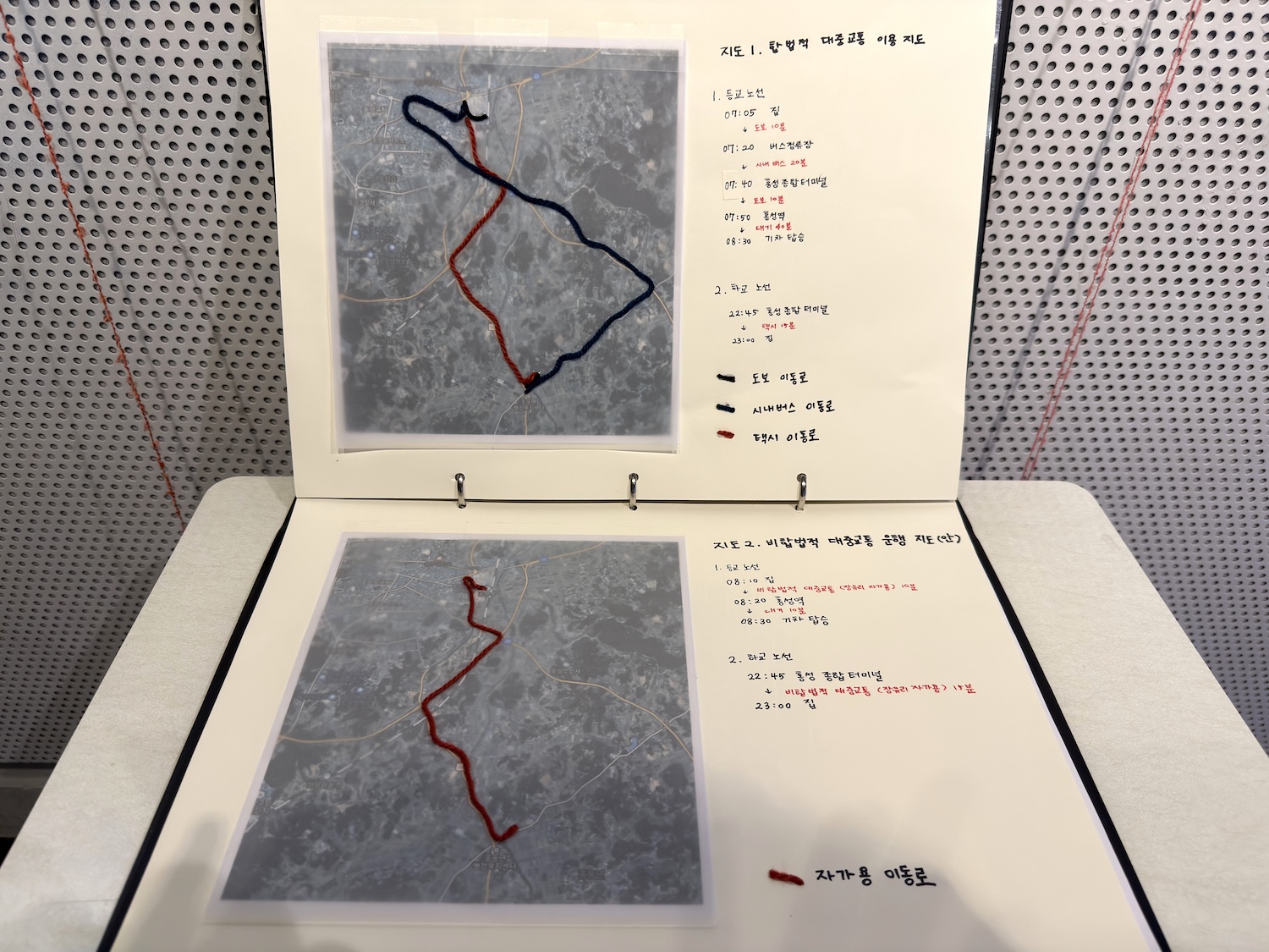 장유리, <비합법적 대중교통 운행 제안서(안)>©서울농부포털<지도 다시 그리기>는 확정된 도착지의 기술이 아니라, 맴돎과 전진, 소거와 덧쓰기 사이를 오가며 좌표를 갱신하는 실천에 관한 이야기입니다. 백지로부터 다시, 그리고 또다시. 길을 잃는 법을 아는 자만이 지도를 그릴 수 있다는 역설을, 길치는 고요하고도 단호하게 증명합니다.