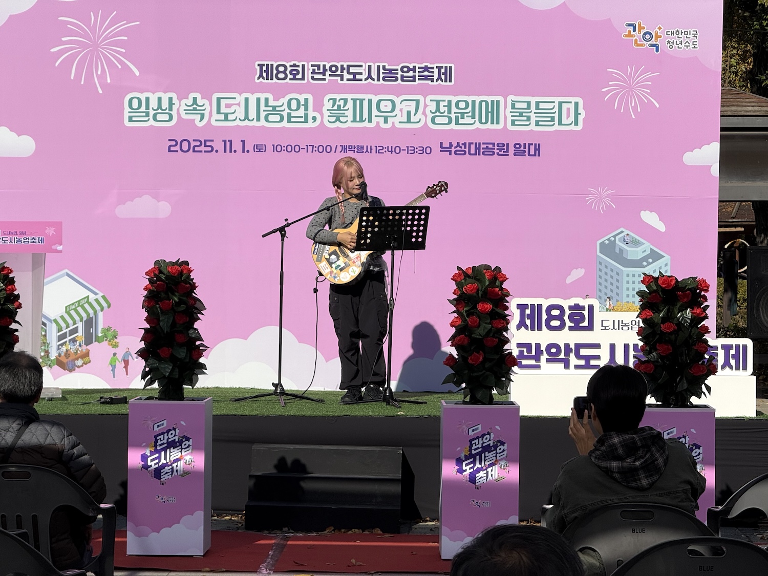관악구 낙성대공원에서 <제8회 관악도시농업축제>가 열렸다. ©서울농부포털11월 1일(토) 관악구 낙성대공원(관악구 낙성대로 77)에서 <제8회 관악도시농업축제>가 열렸습니다. 올해 관악도시농업축제는 "도시농업, 일상"을 주제로, 일상 속에서 자연과 농업을 가깝게 느낄 수 있도록 하는 프로그램을 마련해 시민들을 맞았습니다. 특히 참여 단체들마다 직접 참여할 수 있는 다채로운 체험 프로그램을 준비해 시민들이 현장에서 도시농업의 즐거움에 흠뻑 빠질 수 있도록 했습니다.   축제의 중앙 무대에서는 '환상의 일상'이라는 테마로 음악, 난타, 마술, 버블쇼 등 다양한 공연이 펼쳐졌다. ©서울농부포털<제8회 관악도시농업축제>는 "도시농업, 일상"의 주제 아래, 음악과 마술, 공연이 어우러져 농업·환경의 메시지를 즐거운 축제 분위기 속에서 경험할 수 있도록 하는 '환상의 일상', 사람의 손이 만들어내는 농사의 생명력을 보여주는 '흙과 불의 일상', 도시농업을 통해 단조로운 일상에 소소한 재미와 활력을 불어넣는 '새로운 일상', 건강한 먹거리를 통해 머무름과 여유를 즐길 수 있도록 하는 '풍족한 일상'을 테마로 하는 구성을 선보여 다양한 세대를 아우르는 한편, 도시농업이 특별한 이벤트가 아닌 생활 속 실천이자 즐거움이라는 점을 강조했습니다.       '흙과 불의 일상' 테마 공간에서는 관악산에서 양봉한 꿀과 꿀벌이 전시되고, 탈곡 체험, 떡메 치기 등의 체험 활동이 진행되었다. 특히 '서울문화유산'으로 지정되어 있는 '불광대장간'이 부스를 마련해 각종 농기구를 전시하고, 시민들이 직접 불에 달군 쇠를 쳐볼 수 있도록 했다. ©서울농부포털                  '새로운 일상' 테마 공간에서는 이끼 전시, 곤충 관찰 체험, 댑싸리 빗자루 만들기, 키링 만들기, 찾아가는 반려식물 클리닉, 곤충빵 맛보기, 목공소 술잔 만들기, 샌드위치 만들기, 스와그와 스머지 만들기, 고추장 만들기, 버섯키트 만들기, 꽃차 블랜딩 티백 만들기, 담금주 만들기 등 다양한 체험 행사가 진행되었다. ©서울농부포털박준희 관악구청장은 <제8회 관악도시농업축제>의 기념사를 통해 "관악구는 그동안 도시 속에서 흙을 만지고 자연과 함께 호흡하며 일상에서 농업을 즐길 수 있도록 도시농업을 꾸준히 확산해 와 이제는 우리 집 베란다, 마을텃밭 등에서 반려식물을 가꾸며 손끝으로 키우는 녹색 행복을 느낄 수 있다"며 "<제8회 관악도시농업축제>를 통해 여러 가지를 보고 느끼고 함께 만들고 배워가는 경험을 통해 우리 일상에 농업이 매우 가까이 있음을 느껴 보시길 바란다"고 전했습니다. 도시의 일상은 콘크리트와 교통체증, 스마트폰 알림으로 채워져 있지만, 그 사이사이에는 여전히 흙을 만지고 씨앗을 심으려는 사람들이 있습니다. 낙성대공원에서 하루 동안 펼쳐진 이 축제는, 그 작은 실천들이 모여 도시의 일상을 조금씩 바꾸어 가고 있음을 조용히 보여주었습니다. 김성민 기자