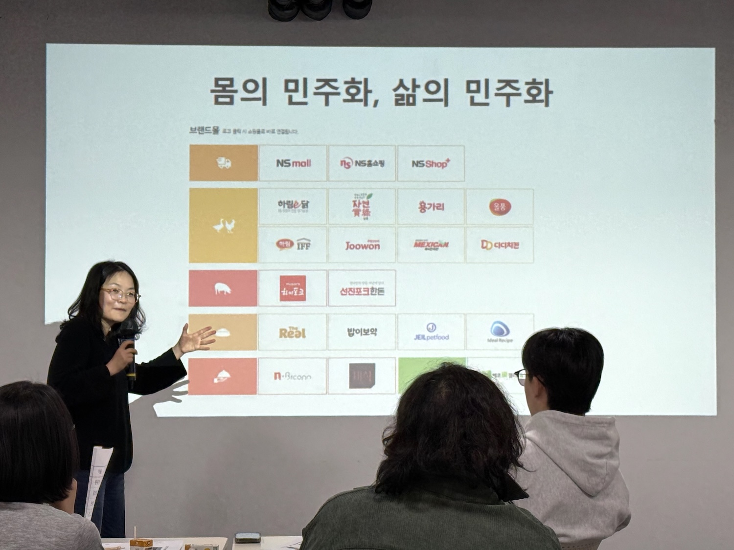 정은정 박사가 치킨을 통해 먹는다는 것의 윤리에 대해 이야기하고 있다. ©서울농부포털정은정 박사는 개인적인 경험을 꺼내며 우리의 근간에 깔린 사람의 마음, 농업의 마음도 전했습니다. 정은정 박사가 사회학자가 된 계기는 '어머니의 삶' 때문이었습니다. 농사를 짓던 부모님. 농약에 대한 경각심이 없던 시절, 밭일을 마치고 집에 오면 다시 가사노동에 '출근'해야 했던 어머니. 그 이중의 멍에는 어린 시절에는 몰랐지만, 돌이켜보니 하나의 완성된 여성 농민의 서사였습니다. 돌아가신 어머니를 묻는 자리 앞에서 모내기가 한창이던 장면은 정은정 박사에게 깊이 각인되었습니다. "우리 엄마는 숟가락을 놓았는데, 눈앞에서는 누군가의 숟가락을 위한 행위가 펼쳐지고 있었어요. 숟가락을 드는 인간은 언젠가 자신이 죽는다는 사실을 아는 존재입니다. 그럼에도 우리는 아이를 낳고, 나무를 심고, 내일을 준비합니다. 인간은 세계의 영속성을 믿는 존재이기 때문이에요."