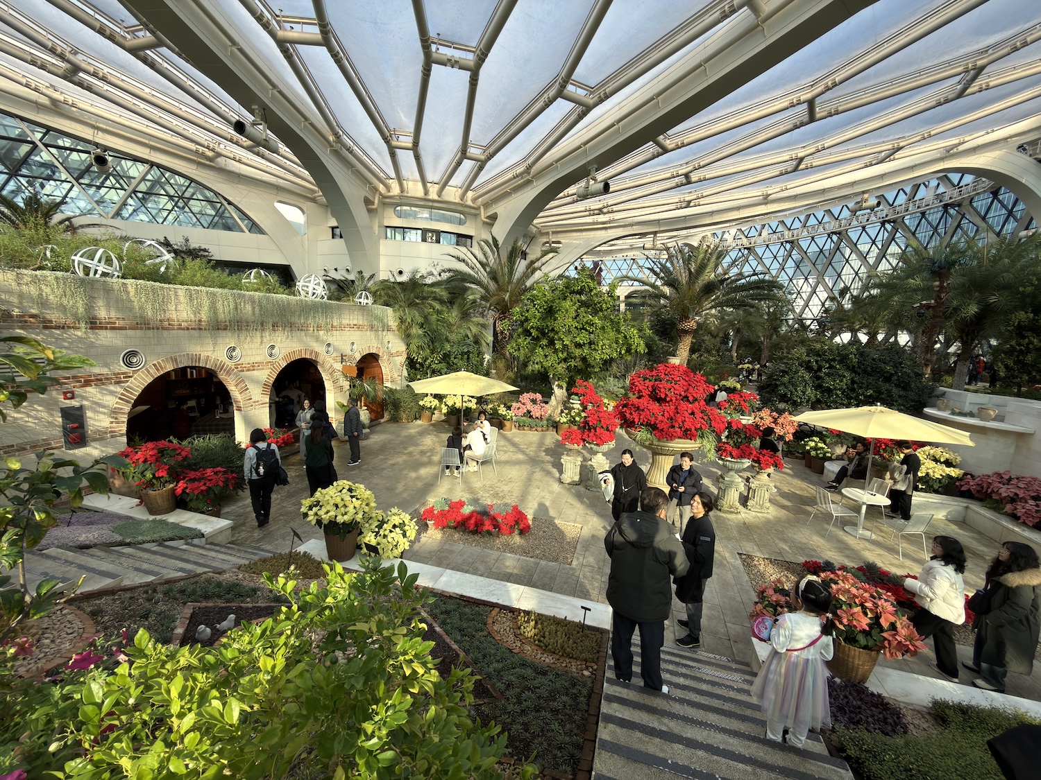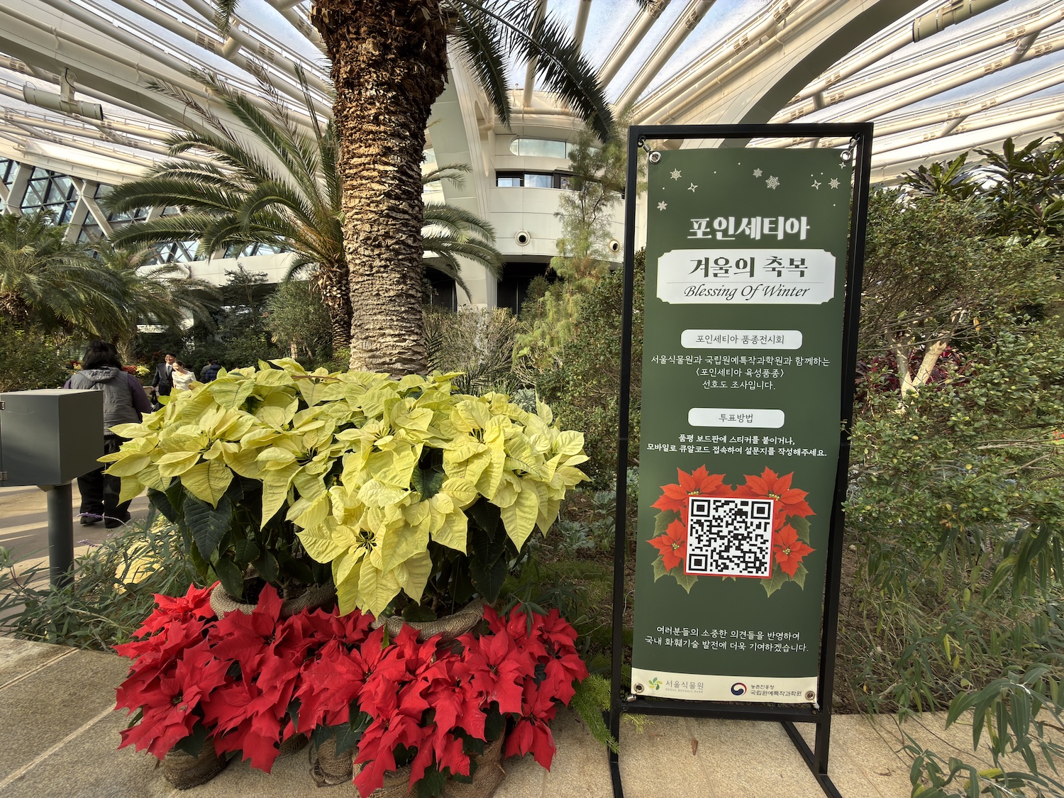 온실에는 '스카이워크'가 설치되어 다양한 높이와 각도에서 식물들을 볼 수 있도록 하고 있다. ©서울농부포털서울식물원에서는 시기별로 다양한 기획 전시를 마련해 특별함을 더하고 있습니다. 지난해 11월부터 올해 1월까지는 "난초와 포인세티아가 선사하는 겨울정원 <윈터 가든>"이 운영됩니다. <윈터 가든>에서는 '춤추는 여인 난초' 온시디움, '난초의 여왕'이라 불리는 카틀레야 이외에도 덴드로비움, 심비디움, 파피오페딜룸, 팔레놉시스 등 40여 종의 열대 난초들이 전시된 '오늘, 난(蘭)' 프로그램과 함께 레드 볼, 플레임, 레드 엘프, 슈가 볼, 카니발, 하이디 핑크, 스노우 볼, 안젤라, 그린 스타 등 국내에서 개발된 9가지 포인세티아 품종을 전시하는 '겨울의 축복' 프로그램이 진행되어 한겨울에도 열대와 지중해의 향취를 전하고 있습니다.