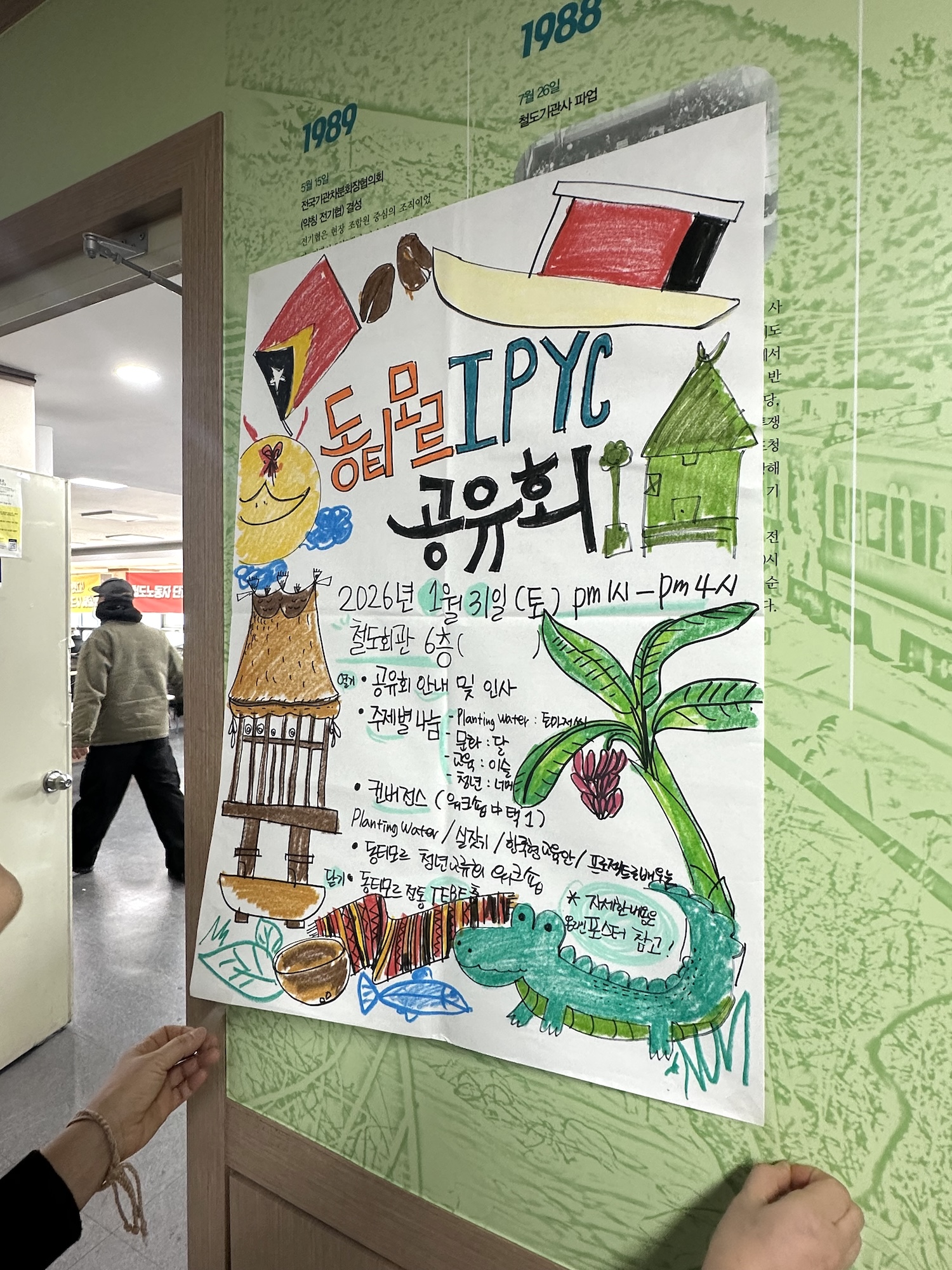 공유회에서는 "IPYC 2025" 활동 사진과 함께 동티모르에서 가져온 물품들이 전시되었고, 서로의 이야기를 나누는 공간이 마련되었다. ©서울농부포털 "IPYC((International PermaYouth Convergence. 세계 퍼머컬처 청년 대회) 2025"는 'PermaYouth 운동'의 성공을 기념하고, 이를 전 세계적으로 확장하기 위한 구심점 역할을 하기 위해 마련된 최초의 국제 행사로, 지난해 10월 20일부터 25일까지 동티모르 에르메라(Ermera) 지역의 파투케로(Fatuquero) 마을에서 처음으로 열렸습니다. 'PermaYouth 운동'은 청년들이 퍼머컬처 지식과 기술로 무장하여 환경 위기에 대응하고 지속가능한 미래를 만들어간다는 국제적인 행동으로, 핵심을 '이론'이 아닌 '실천'에 두고 지역 공동체에 뿌리를 둔 해결책을 강조하는 운동입니다.