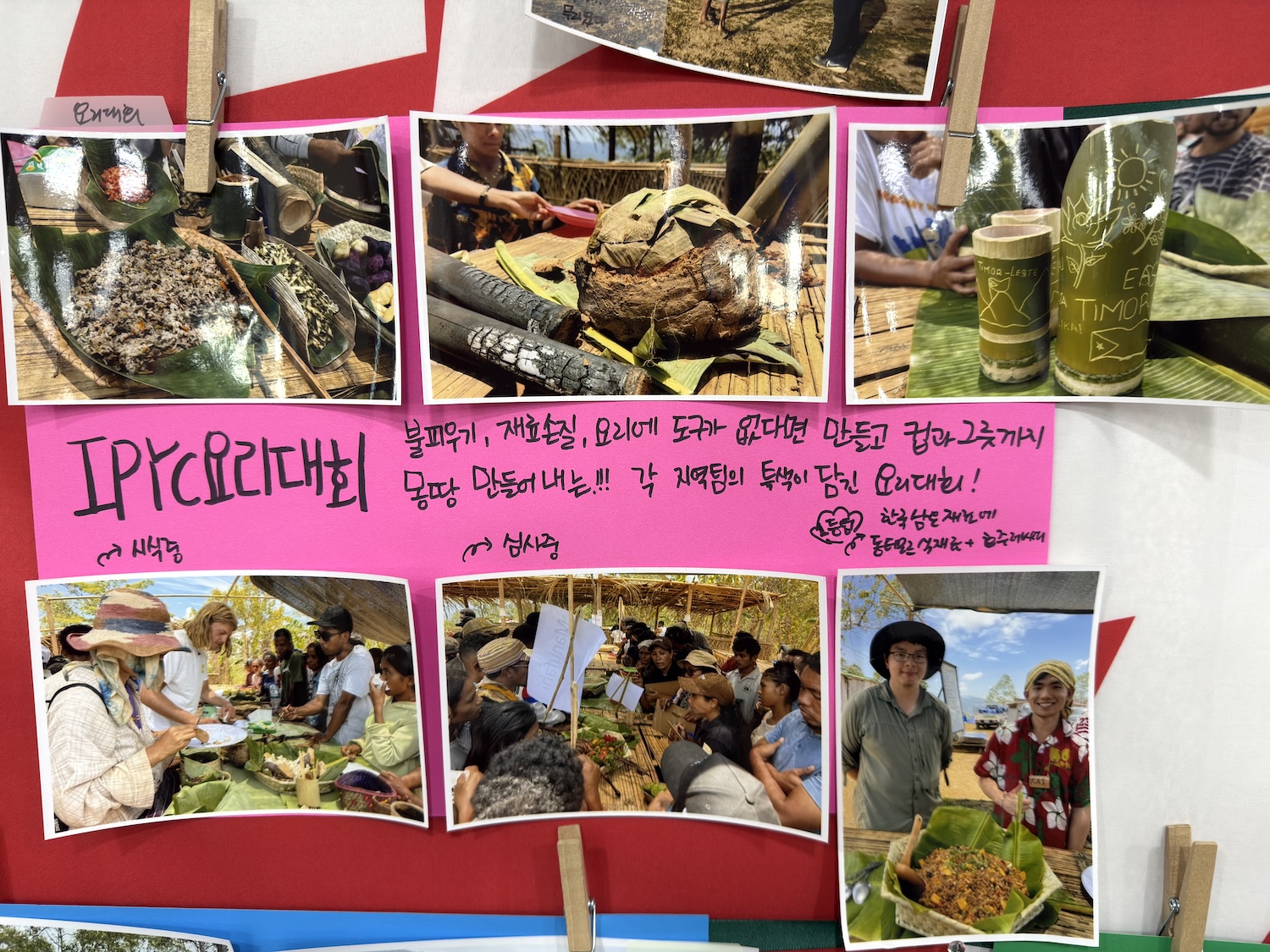 동티모르의 움마룰릭(uma lulik) ©한국퍼머컬처네트워크"IPYC 2025"에서 진행된 요리 경연대회에서 참가자들이 2시간 만에 음식과 함께 대나무와 바나나잎을 꺼내 들어 그릇과 숟가락, 찜기까지 즉석에서 만들어내는 장면은 상징적입니다. 여기서 손기술은 취미가 아니라 인프라이며, 자연물은 장식이 아니라 재료입니다. 식재료를 과하게 가공하기보다 원래의 맛을 살리는 방식 또한, 자연을 정복하기보다 살리는 생활 철학과 이어집니다.
