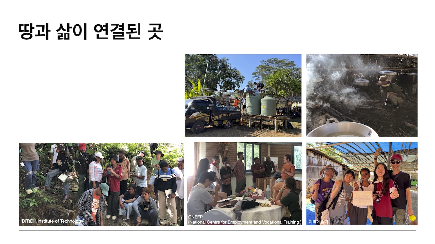 결국 동티모르의 퍼머컬처는 자연을 예쁘게 꾸미는 프로젝트가 아니라, 나라를 다시 세우는 문법에 가깝습니다. 그리고 그 문법은 룰릭이라는 신성함의 언어와도 모순되지 않습니다. 섬이 되기 위해 몸을 내준 악어의 이야기처럼, 동티모르에서 지속가능성은 누군가가 무언가를 내주는 관계의 윤리로 시작합니다. 달은 "전 세계가 동티모르의 퍼머컬처를 통한 재건에 힘을 보태는 이유도 여기에 있다"며 "물을 심고, 공동체를 키운다는 말이 이곳에서는 실제로 삶을 이어 주기 때문"이라고 전하며 발표를 마무리했습니다.