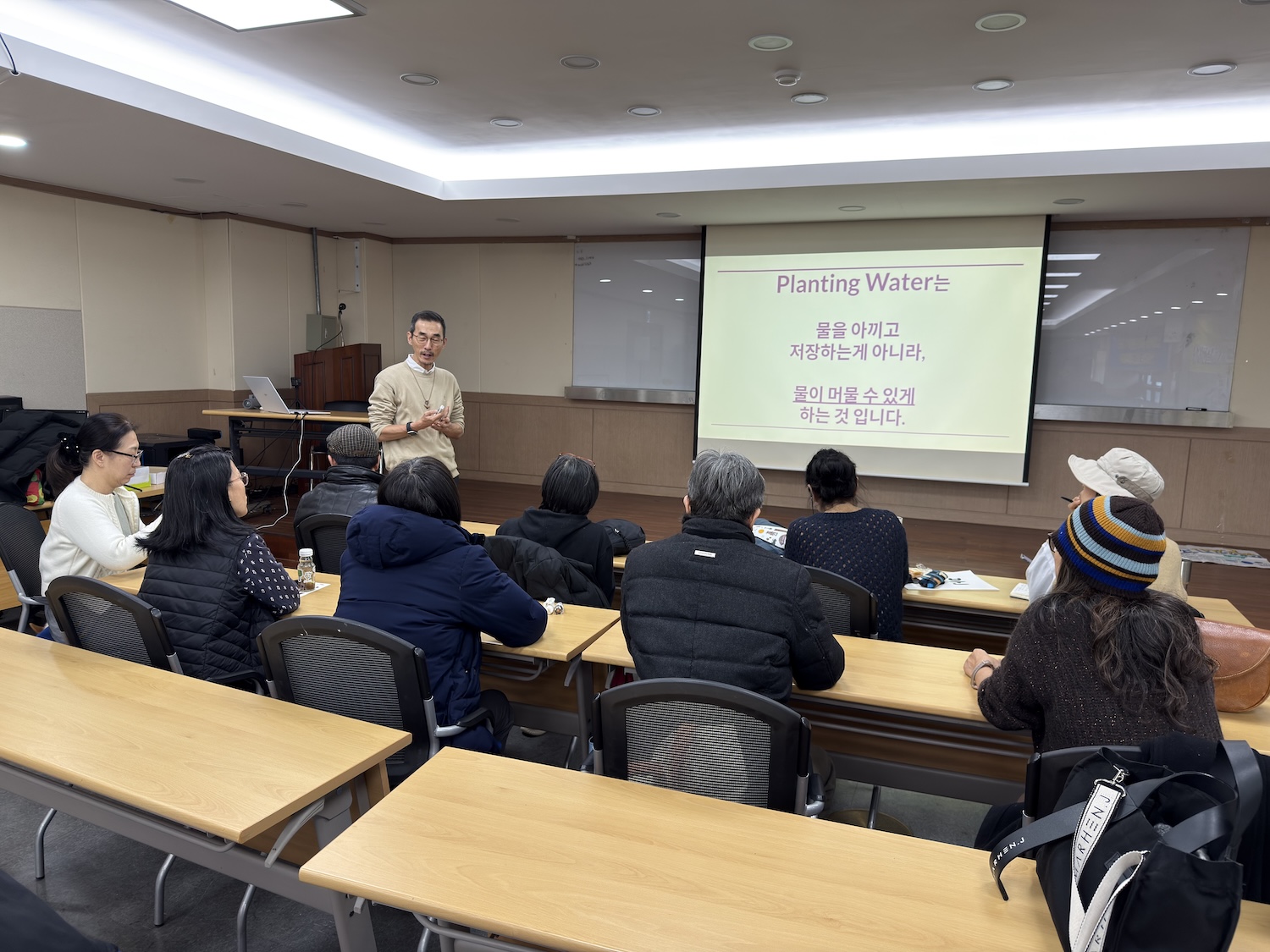 공유회가 진행되고 있다. ©서울농부포털이번 공유회에서는 "IPYC 2025"에 직접 참여한 한국퍼머컬처네트워크 4명의 대표 활동가가 "IPYC 2025"의 핵심 주제였던 "물을 심고, 공동체를 키우다(Planting water, growing communities)"의 내용을 전하고, 현지에서 보고 듣고 배운 동티모르의 생태문화, 퍼머컬처를 국가적으로 초등교육과정에 통합시킨 동티모르의 상황, "IPYC 2025"에서 만난 청년들의 이야기 등을 생생하게 전달했습니다.