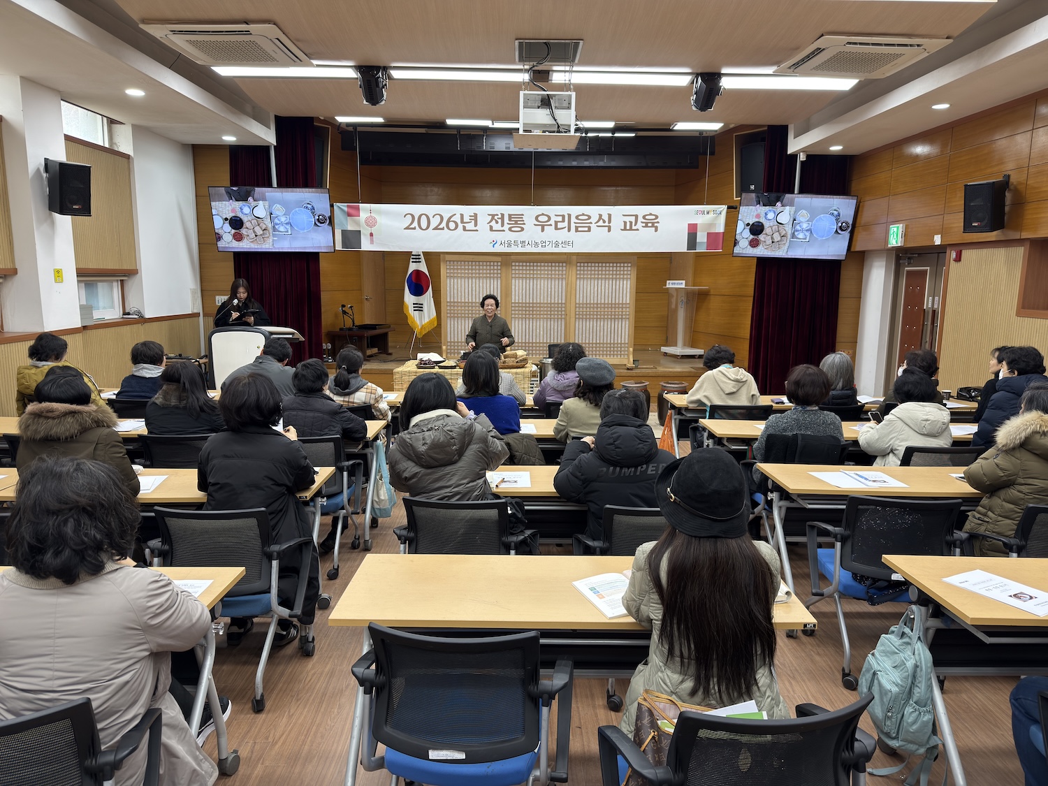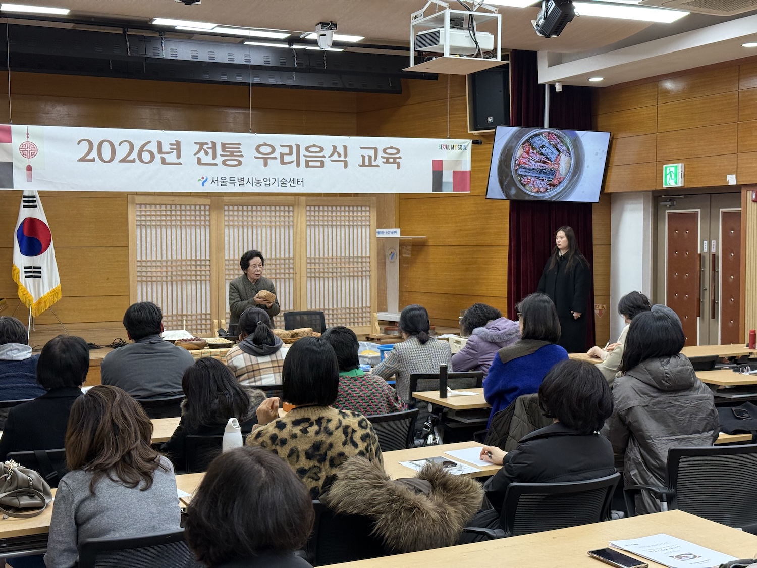 서울특별시농업기술센터 전통우리음식 장류교육장에서 "전통장류 강좌 시리즈"가 열렸다. ©서울농부포털2월 24일(화) 서울특별시농업기술센터 전통우리음식 장류교육장에서 '한국 장 담그기 문화' 유네스코 인류무형문화유산 등재 기념 "전통장류 강좌 시리즈"의 첫 번째 시간으로 된장∙간장 만들기 강좌가 열렸습니다. 서울시민 누구나를 대상으로 열린 이번 강좌에서는 오랜 시간 동안 수천 명의 주부·귀농인·학생들에게 전통장을 알려 온 조숙자 명인이 진행과 시연을 맡아 수십 년 간 쌓아 온 된장∙간장의 비결을 전수했습니다.