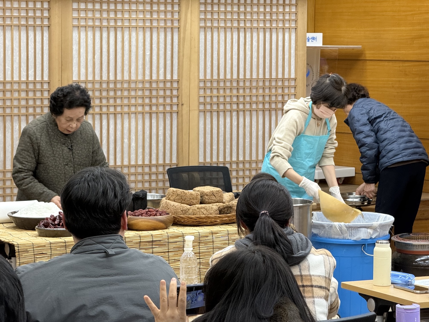 이날 강좌에서 무엇보다 인상 깊었던 말은 "집안에 몸이 아픈 사람이 있으면 장맛이 변합니다"라는 말이었습니다. 그만큼 장은 집안의 기운과 사람의 마음을 고스란히 담아내는 음식이라는 뜻입니다. 조숙자 명인은 "아파트에서도 충분히 담글 수 있습니다. 작은 항아리 두세 개로, 처음에는 조금씩 시험 삼아 해 보세요. 한 번, 두 번, 세 번 해보면 정말 쉬워져요. 포기하지 말고 직접 해보세요"라며 참가자들을 격려했습니다.