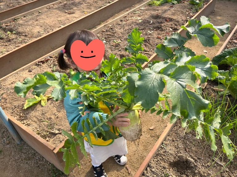 빨간 무, 커다란 무을 힘껏! 흔들흔들 뿌리를 흔들어 배추를 뽑아요.